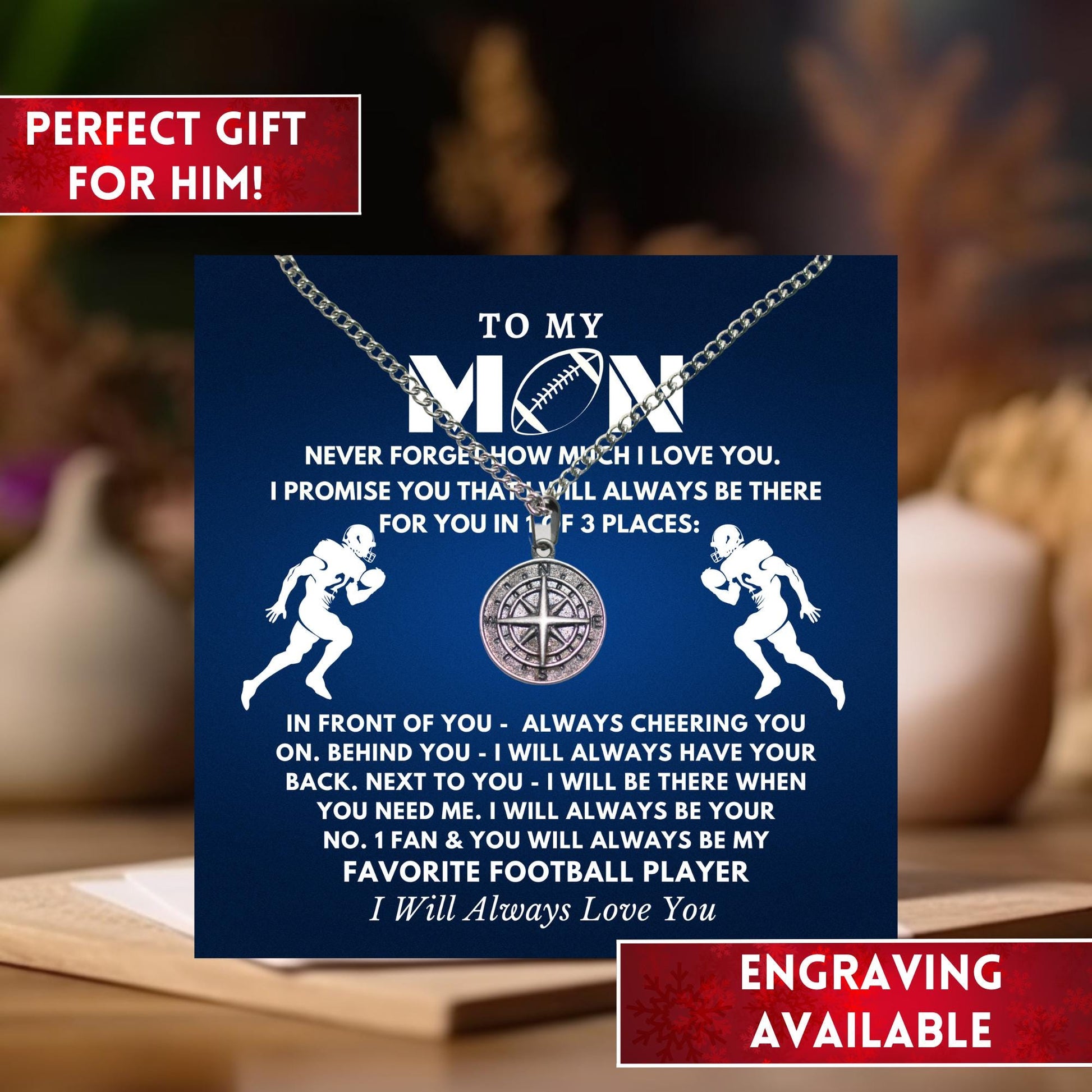 Football Gift Compass Necklace, Football Player Gift For Football Player, Football Lover Gift. Football Fan Gift, Gift For Football Lover
