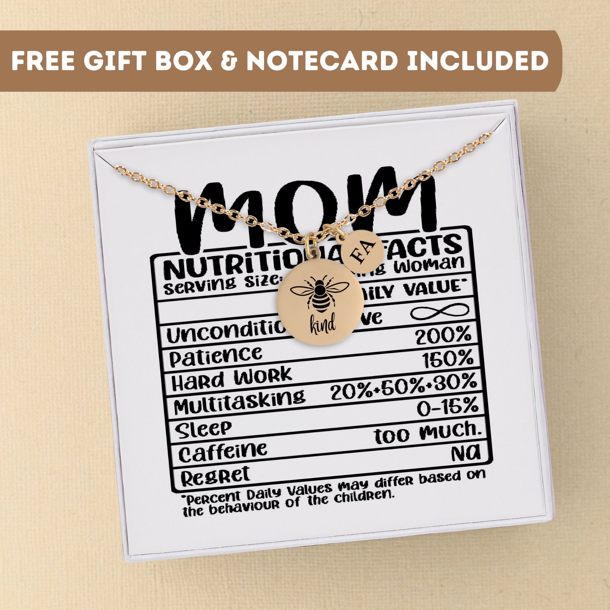 Personalized Bee Kind Necklace For Mom, Mom Nutritional Facts Jewelry, Custom Mom Gift, Mom Necklace, Mom Pendant Silver, Mom Charm Necklace