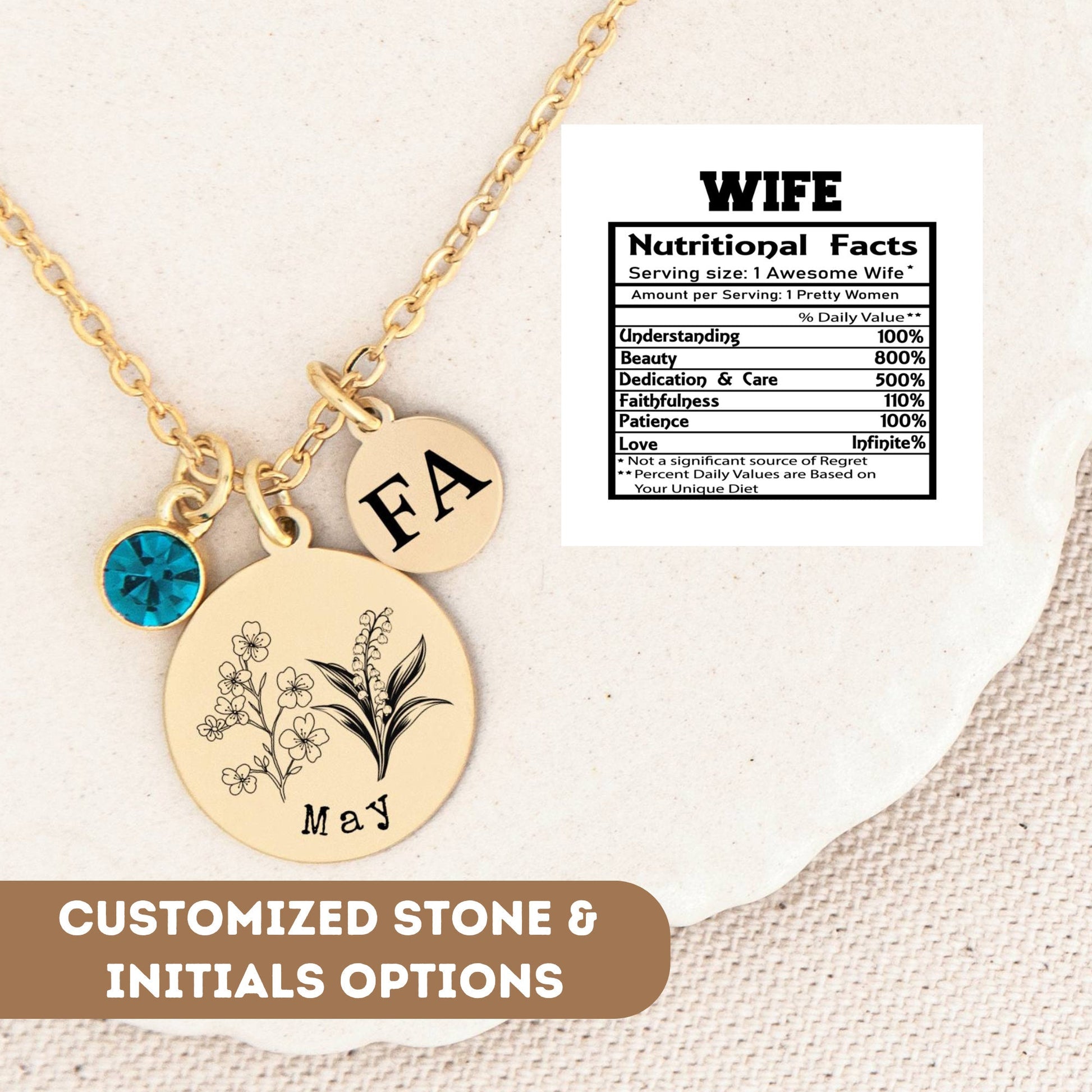 Personalized Birthflower Necklace For Wife, Custom Birthflower Necklace Gift, Custom Birth Flower Family Bouquet, Birth Flower Gift For Wife